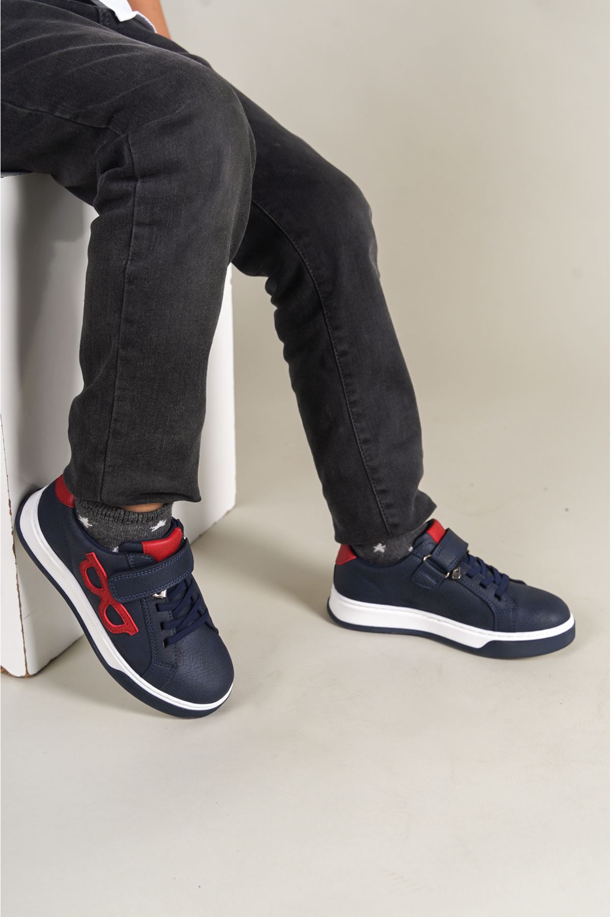 1011 GlassesX Çocuk Ayakkabı Lacivert Kırmızı Beyaz