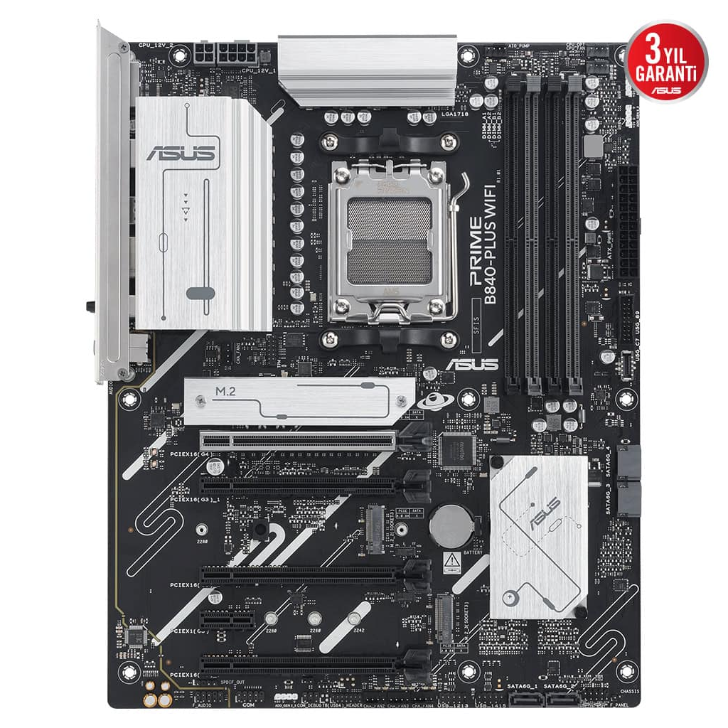 ASUS PRIME B840-PLUS WI-FI, 4xDDR5, 3x M.2, HDMI, DP, Type-C, WI-FI 6E, Bluetooth 5.3, AMD Ryzen 9000 Serisi, AM5 Soket Anakart