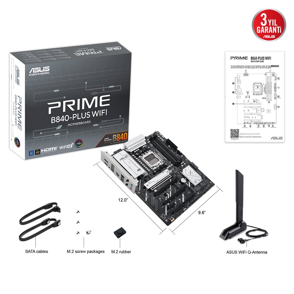 ASUS PRIME B840-PLUS WIFI, 4xDDR5, 3x M.2, HDMI, DP, Type-C, WI-FI 6E, Bluetooth 5.3, AM5 Soket GAMING Anakart