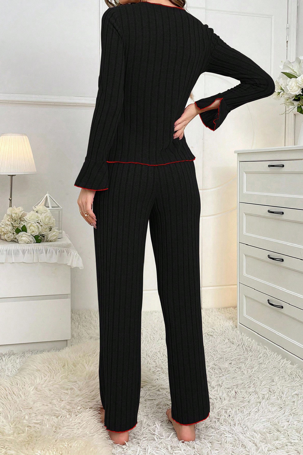 • Bu sade siyah pijama takımı, kadın ev giyimi kategorisinde hem şıklığı hem rahatlığı bir araya getirir.