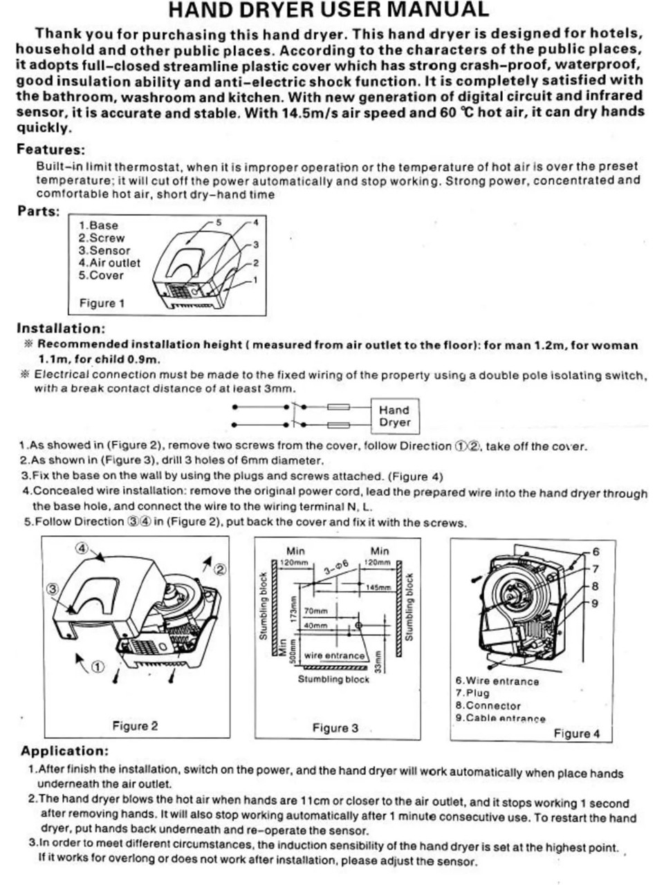 Plastik Gövde El Kurutma Makinesi Özellikleri